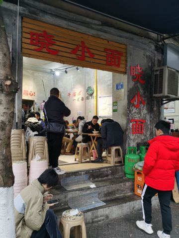 起了个早来打卡酒店不远的晓小面,也是一家深受本地人欢迎的小面店,环境真的不算好,也几乎都是拼桌,点的招牌晓小面,上来后发现三两还是有点多了,胃口不大的二两足够,缓缓把面拌均匀,开始享受,料调得还是很不错的,多要了点辣,越吃越香,味道也越来越浓,一定要吃菜叶子,这可不只是点缀一下而已