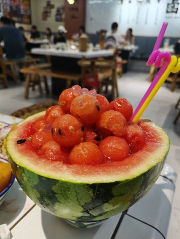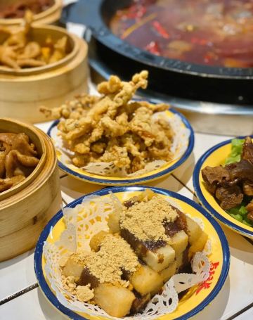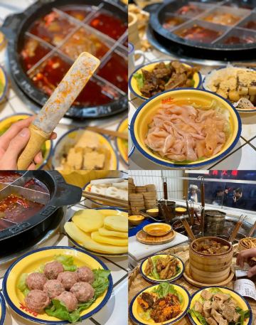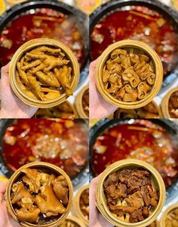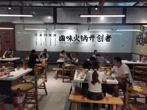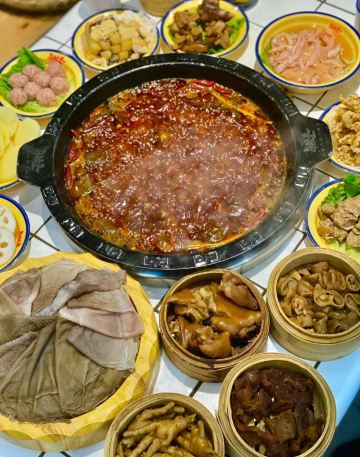 火锅店非常宽敞,里面的装修风格,给人一种亲切又热闹的感觉,吃火锅那必须热热闹闹… 菜品: 喜欢卤味的朋友一定要去啊!还没进店就能闻到卤香味,店门口就是现卤的卤味:辣卤耙鸡爪、辣卤排骨、卤肥肠、卤猪蹄、卤牛肉……微辣的卤汁配上各种菜品,真的好有口感!可以直接吃,也可煮在锅里,看个人喜好! 十二种甜品真的大受欢迎:杨枝甘露、红糖冰汤圆、红糖冰粉、芒果沙冰、椰子沙冰……哪一款不爱?麻辣辣的火锅配上这多种多样的甜品,满满的幸福感啊