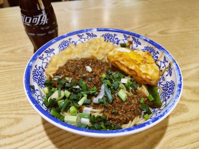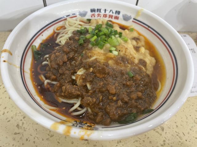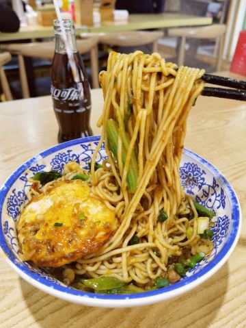 在重庆,早上吃个豌杂面也是幸福啦! 十八梯邓凳面也是老店,各种面粉选择太多,还是来个豌杂面吧,经典! 豌杂面一碗份量足,扑扑满浇头一半杂酱一半豌豆,再加个煎蛋,香喷喷的上桌,拌匀之后太诱人了,而且非常入味,又香又好吃!