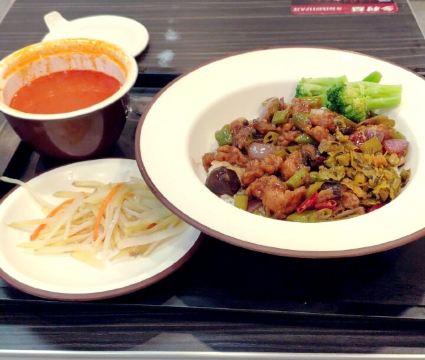 蜜辣烤翅饭,翅香功夫鸡腿饭,泡椒鸡,泡椒牛肉,功夫鸡腿饭套餐,番茄土豆牛肉粒,儿童套餐,招牌香菇鸡双拼,蜜辣鸡翅套餐,农家炒肉套饭,欢乐儿童饭,欢乐儿童餐,经典铁板牛排,宫保鸡丁套饭,卤肉饭,川味卤肉饭套餐,酸菜米线,培根蛋炒饭,功夫鸡腿双拼,新版香菇鸡双拼套饭,农家小炒肉