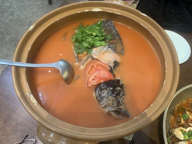 Wanji CHUN CAI FU发现了千岛湖这家宝藏餐馆,虽然是千里迢迢从杭州赶赴过去吃的,但这家店的口味大多数是适合江南人的。千岛湖的鱼头就不用介绍了,淳牌鱼两吃,一道鱼头烧成番茄鱼,一道鱼尾划水红烧。番茄鱼头的汤底浓稠酸甜;鱼尾嫩滑入味;私房虾用的是沼虾,个头只只硕大;蛋黄焗茶树菇,酥脆鲜香…而且这家店最可圈可赞的是除了菜好吃、菜量也非常实在,三人的套餐连吃带打包才消灭完。听说这家餐馆在当地小有名气,所以想要尝试得趁早,否则需要等位。另外这家店吃饭停车是在旁边100米处的开元酒店,吃完领券可以免费2小时,方便了开车就餐的伙伴们。