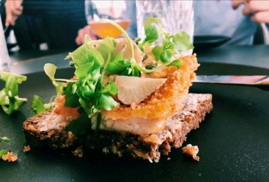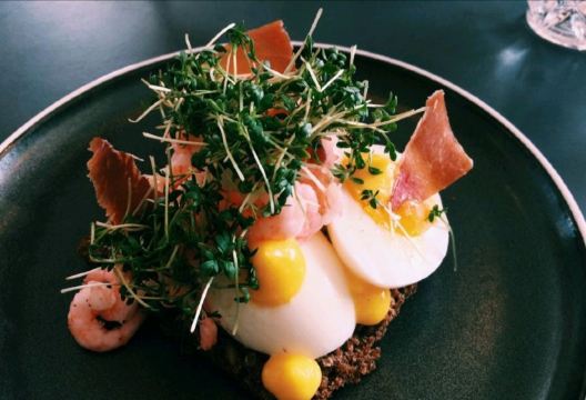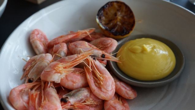 哥本哈根新港区人气店 almanak 生意好到每天都开 在建筑物the standard 里面有两间餐厅一个爵士酒吧 其中另外一家餐厅是一星當紅 the studio / 本地的虾子非常的鲜甜 边吃饭边遥望对岸几百米的NOMA 😂
