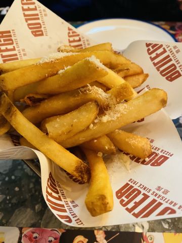 上了必吃榜做piza的地点,心须要打卡一下. 下班之后跟朋友一起来的,位置比较好找,就在三里屯花园楼上,晚上洒吧街人很多,这里倒还好,相比较环境更好一些,主要是piza,意面和甜品。菜品很实在,不花哨也不做作,饮品选的果汁为主.甜品点的心很软.每道菜口味都恰到好处,很喜欢,雨后北京空气很好,选择露天座位空气非常新鲜,特别适合约会