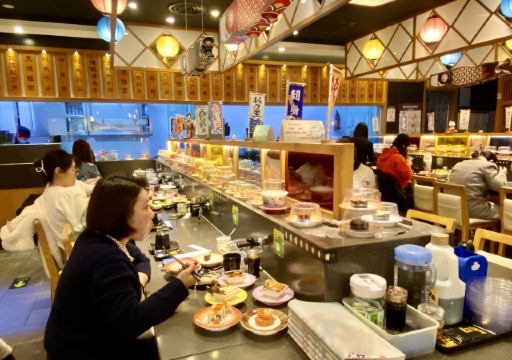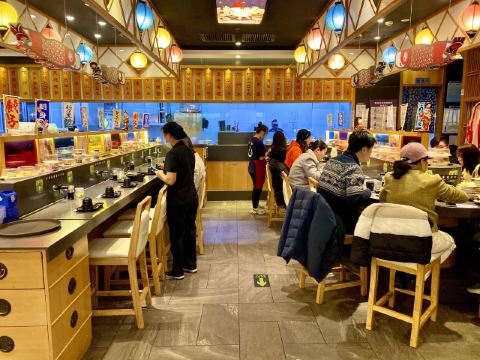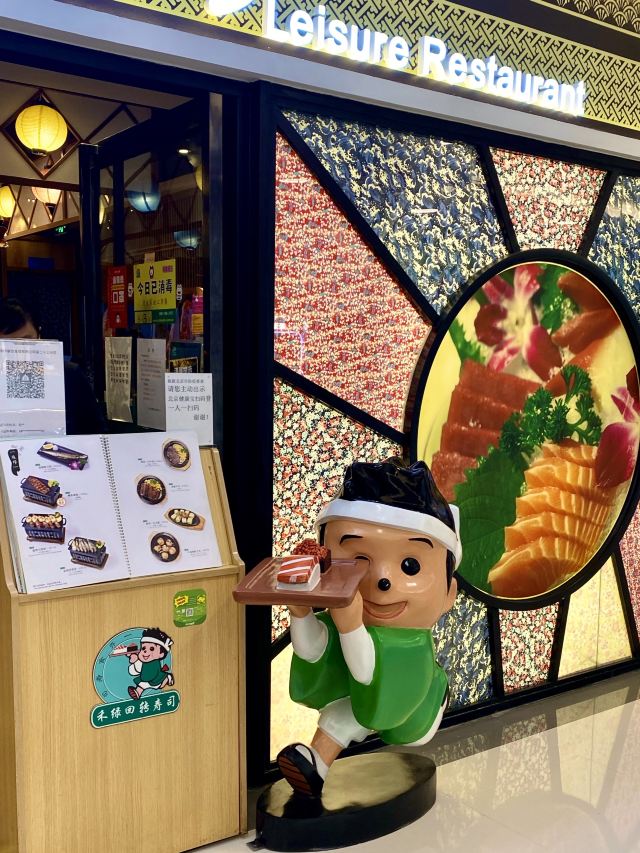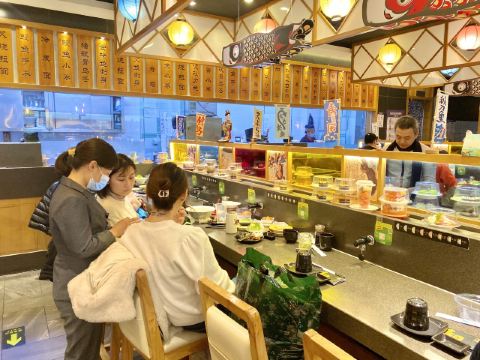 Helv Sushi (GuoRui)禾绿回转寿司国瑞店午餐时间很多是上班族。日餐相对清淡,大受欢迎的是猪软骨拉面,吃面喝汤。寿司的种类很多,有人不太习惯那种自取方式,因为已经转了好几圈。可以单点,服务员会从厨房直接端出来。