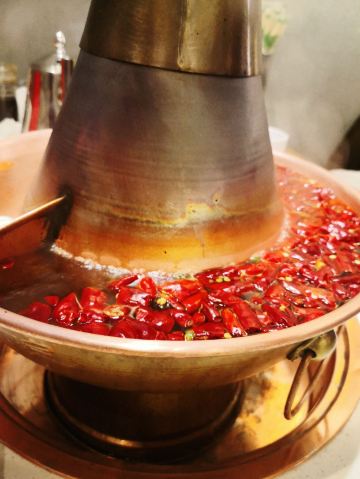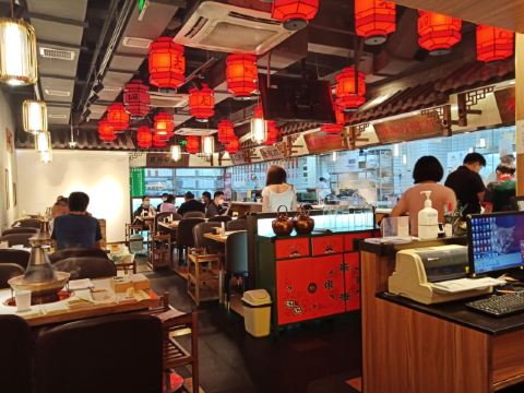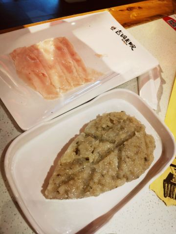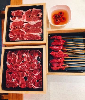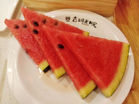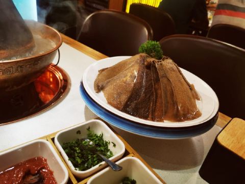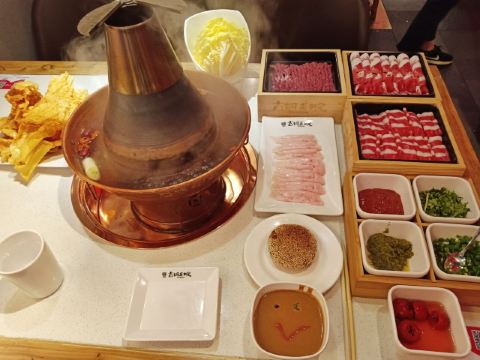 Ancient Bronze Courtyard Hot pot · Halal (Xisi Branch)在西四北大街183号发现这家铜锅涮羊肉,距离西四地铁站不远。开始被门口的老北京小吃吸引进来,小吃种类特别多。进店又被涮肉的味道吸引。 餐厅环境很干净,开放式的明窗后厨,可以看到食物制作的过程。店内明亮红色喜庆的装修风格和火锅很搭呀,夏天吹着空调吃火锅绝对的享受。 服务员点菜上菜都很快,服务也是相当热情周到了。 火锅是正宗的碳火铜锅,点的现磨芝麻酱小料,端上来就闻到了芝麻酱的浓香,还有蘸料的四种配菜。赠送的巴尔虎羊尾油肥而不腻,还增加了清汤锅底的味道。 巴尔虎羊后腿,肉紧致鲜嫩量很大,非常实在。 巴尔虎羔羊肉卷 下锅即熟,肉片不会煮散,一点膻味都没有。 甲级肥牛卷 肥瘦相间,入口鲜美。 炸腐竹 涮锅常年必点,这家给的量很大,腐竹味道很正宗。 老院芝麻烧饼 烧饼都是现做的,热腾腾刚出锅的,外皮酥脆,火锅必配。 店里还送了自制的炒红果和西瓜,开胃解腻。