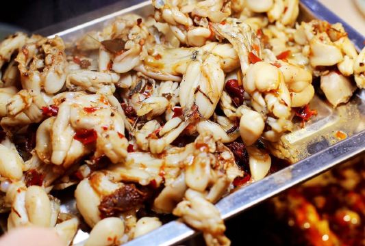 川渔郎,门头够鲜艳招惹眼球,香辣味、椒嘛味、酸菜味不同的锅底,作为四川人还是更喜欢传统麻辣味,花鲢鱼头最后出来的香滑口感也是我的最爱。 吃完鱼,还可以加蛙和其他菜品,比较自由,毕竟花鲢是很便宜的消费,这家的甜品还免费吃,品类花样也多,可以去试试。