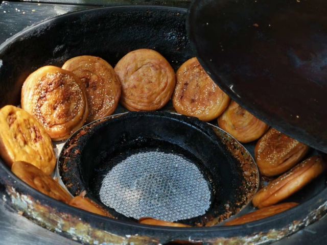 一家人气很旺的锅盔店,装潢非常简单,常会看到排队购买的食客。店家现场制作,他们家的锅盔用料实在,口感酥脆,价格也很实惠。