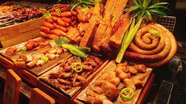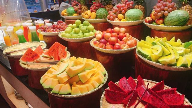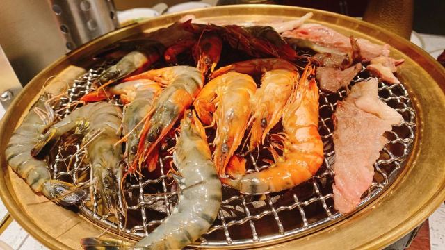 黑虎虾,水果,炭火烤肉,南美大红虾,原味肉,三文鱼,雪花梅肉,吾桑哥肥牛,蛋挞,炖盅甜品