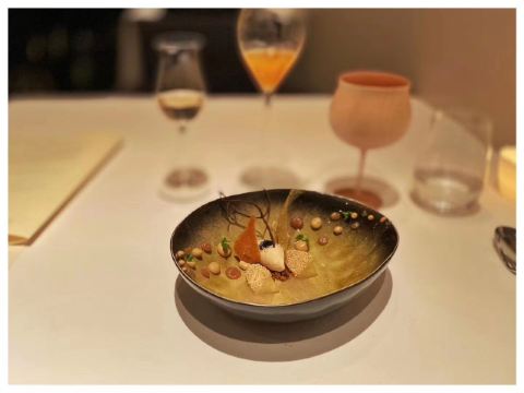国庆假期最后一天,小姐妹聚聚。有预订,午餐下午茶一锅端,2 不用另外找地方续推。驾车,地铁,小电驴都很方便,)近门口有位黄马甲小哥指引很贴心。菜品是定价的,清淡颜值高,上餐前有专门最后确定菜单。环境没得说,适合拍照留影,大家都很尽兴!传照片时才发小如妹汶件旋袍跟店面直是相役 SF