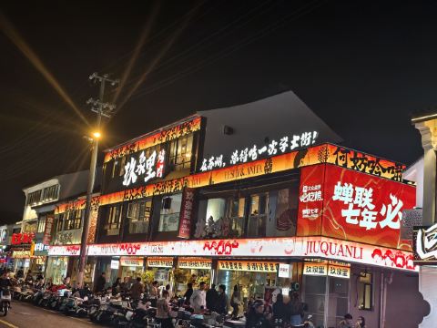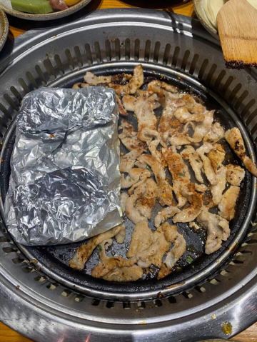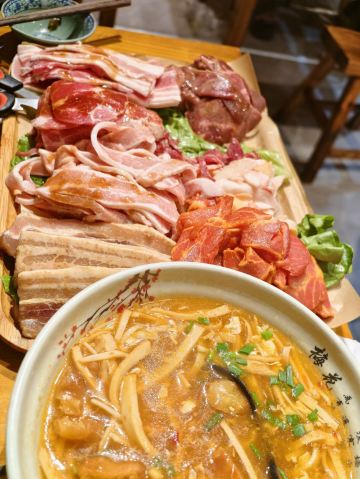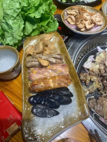 只要想吃烤肉,就会想到玖泉里,从园区开车40分钟,赶来,晚上八点,这么多分店都在排队,霸占了整个学士街太壮观了。学士街=玖泉里一条街。 坐定后,自己夹生菜,整调料,点了很多份肉,有点贪心了,因为他家的肉量很大,根本吃不完。 年轻人很多,价廉物美,老板很帅。 胸口油,五花肉都吼吼吃!