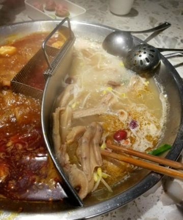 味道非常赞,然后我觉得挺不错的,然后最主要是嗯,你可以自己选择锅底,然后我觉得比如说你不想吃辣的呀,或者说你想吃那个骨头汤的锅底都可以