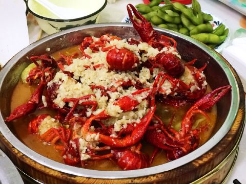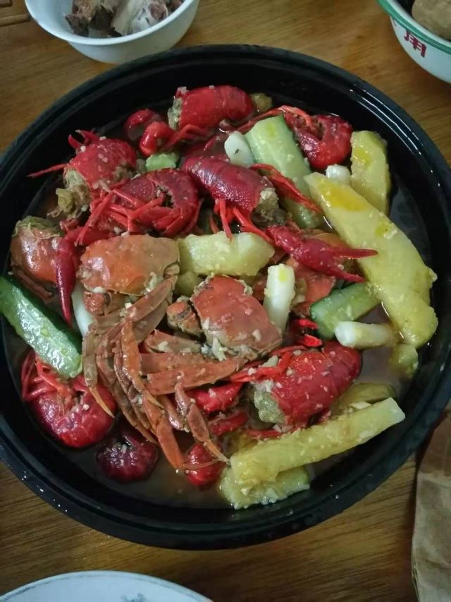 听说是开了20几年的店,就那种小店,环境就很一般。 三个人点了两份龙虾,一份盐水毛豆,外加一些旁边的烧烤。龙虾肉质挺饱满的,处理得也还干净,但就是不太入味,然后香辣的那份几乎一半都是黄瓜。毛豆是惊喜,有种很鲜甜的味道,很适合下酒。 不过现在的小龙虾已经到了快吃不起的地步了,一份190,应该也不太会常去吃。