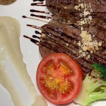 就是儿童游乐场里面的西餐厅哦,只能说随便吃吃哦,里面的七彩蛋糕味道听不错哦,那个牛排味道过得去,不算很老的,价格比较贵。
