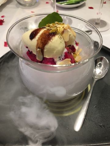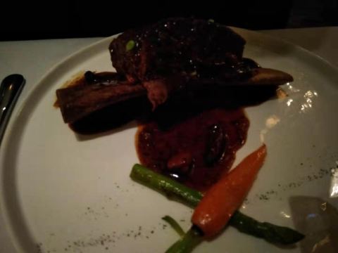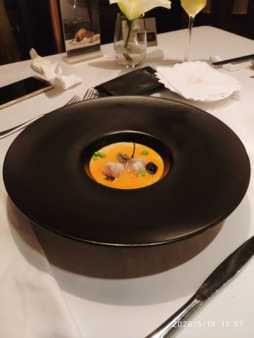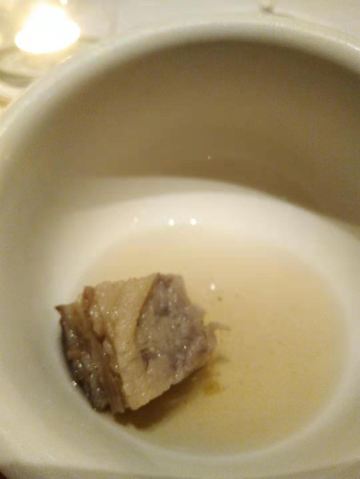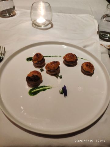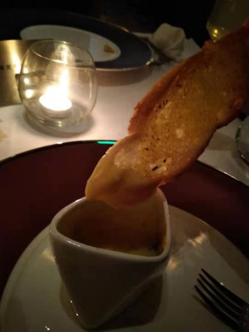 晚餐聚会,上楼后找了一下才找到。进门后服务挺好,就是上菜太慢了,不停加水,加饮料,果酒,红酒,酸梅汁。上了几片面包片,土豆泥,后者味道不错。好不容易上前菜,一道生菜,然后芝士蘑菇蜗牛,好吃。然后主菜是鳕鱼排和羊排,特色不明显,还可以吧,吃多了有点腻。主菜过后是甜品,我们的是冰激凌,还有的是芝士蛋糕,口味有特色。情调还可以,太难等了。不适合聚会,只适合两三个人聊天约会。