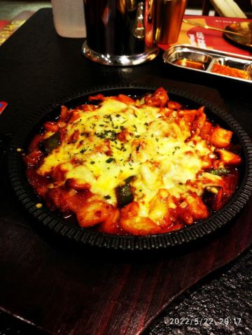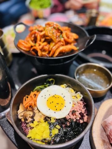火辣鱿鱼,石锅拌饭,厚切猪五花配泡菜,吸满酱汁的辣鸡爪,五花肉泡菜饼,雪花冰