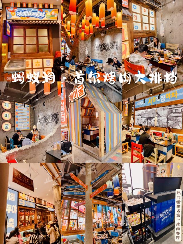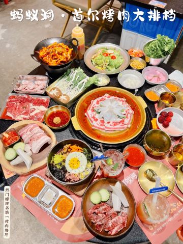 很火🔥的正宗韩式烤肉店在广州开新店啦!吃货点🉑以错过呢,约上好友嚟打卡尝鲜 长居热门榜排名No1️⃣,新开业以来天天排长队,好多人不惜排上2️⃣个钟就系为了这一口正宗传统韩式烤肉以及这里的氛围感 🌈走进店里,浓浓的韩式🎊装修风格,还原韩剧小篷车🚜的欢快气氛,仿佛置身韩国街头 ✨手磨黑胡椒雪花肋条 用黑胡椒腌制的原切谷饲雪花肉,黑椒味浓郁又不会掩盖牛肉自身的味道,肉质松软口,鲜嫩多汁,一口下去🈵口牛油香 ✨蚂蚁洞特色瘦牛 薄切的瘦牛不宜烤太久,搭配秘制的麻酱,味道好到不要不要的🤩 ✨厚切猪五花肉 服务员主动帮忙烤,肥瘦相宜的五花肉经过1️⃣0️⃣天低温排酸,煎到金黄色,外香脆里嫩滑,肉香浓郁扑鼻,搭配泡菜或生菜口感清新不油腻 ✨金仓鱼蔬菜沙拉 食完肉正好来个沙拉,倒入酱汁将金枪鱼肉和新鲜的蔬菜🥬拌一拌,里面还有葡萄干🍇,多重口感,清新解腻 🏡蚂蚁洞首尔烤肉大排档 📍体育东路39-45号 🚇地铁1号线体育中心站D3出口 🕰11:00-23:30