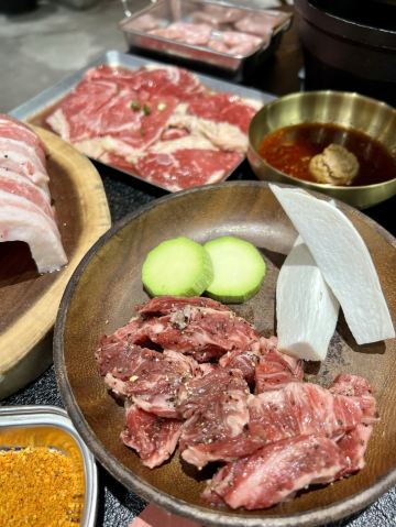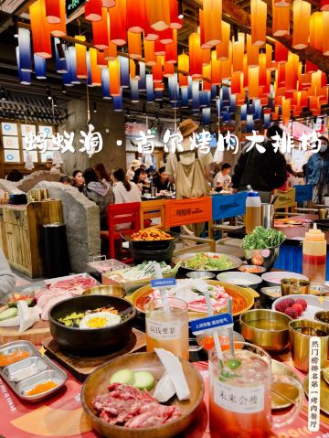 七七喝喝很火🔥的正宗韩式烤肉店在广州开新店啦!吃货点🉑以错过呢,约上好友嚟打卡尝鲜 长居热门榜排名No1️⃣,新开业以来天天排长队,好多人不惜排上2️⃣个钟就系为了这一口正宗传统韩式烤肉以及这里的氛围感 🌈走进店里,浓浓的韩式🎊装修风格,还原韩剧小篷车🚜的欢快气氛,仿佛置身韩国街头 ✨手磨黑胡椒雪花肋条 用黑胡椒腌制的原切谷饲雪花肉,黑椒味浓郁又不会掩盖牛肉自身的味道,肉质松软口,鲜嫩多汁,一口下去🈵口牛油香 ✨蚂蚁洞特色瘦牛 薄切的瘦牛不宜烤太久,搭配秘制的麻酱,味道好到不要不要的🤩 ✨厚切猪五花肉 服务员主动帮忙烤,肥瘦相宜的五花肉经过1️⃣0️⃣天低温排酸,煎到金黄色,外香脆里嫩滑,肉香浓郁扑鼻,搭配泡菜或生菜口感清新不油腻 ✨金仓鱼蔬菜沙拉 食完肉正好来个沙拉,倒入酱汁将金枪鱼肉和新鲜的蔬菜🥬拌一拌,里面还有葡萄干🍇,多重口感,清新解腻 🏡蚂蚁洞首尔烤肉大排档 📍体育东路39-45号 🚇地铁1号线体育中心站D3出口 🕰11:00-23:30