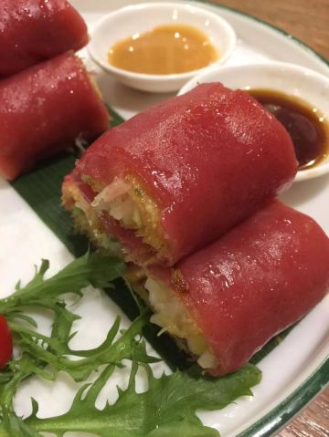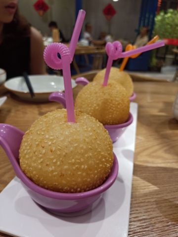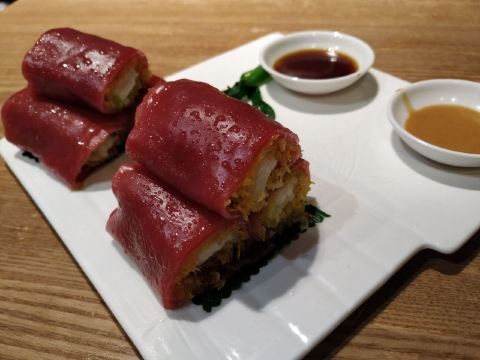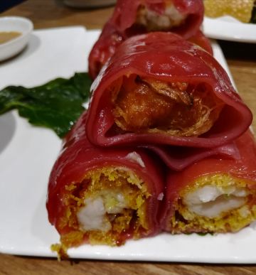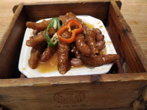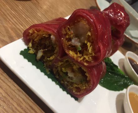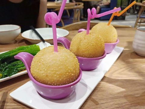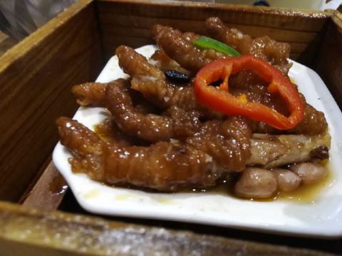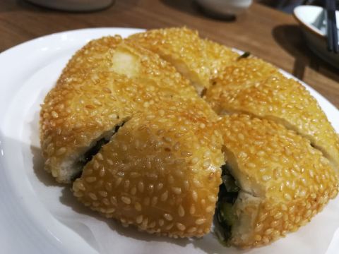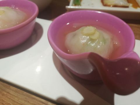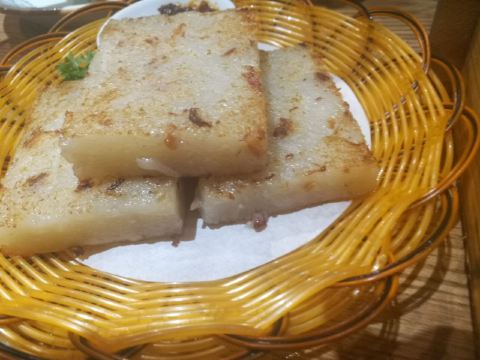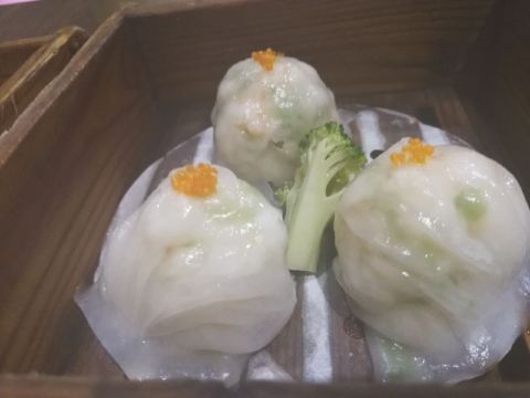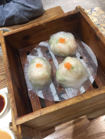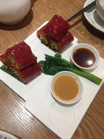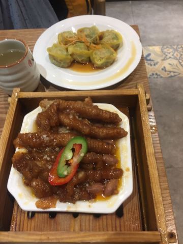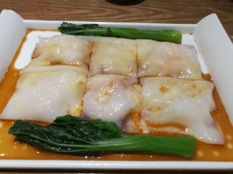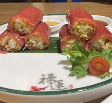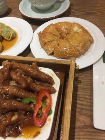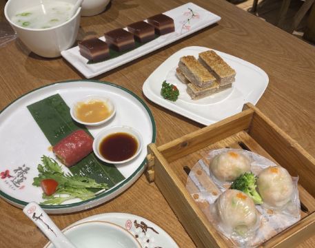 芳芳Flora这家“禄运茶居”位置猎德地铁站A出口附近,而且有多路公交车抵达楼下的车站,交通非常方便。餐厅的装修风格简朴、明亮,桌子之间用竹竿或铁杆错落式间隔,挺有点别致的。 来来看点心: (1)金牌禄运虾饺皇,3只虾饺都是个头挺大的,里面饱满的虾仁,外皮薄而透明,很好! (2)云南小瓜金钱饺,挺特别的饺子,在别家未吃过以云南小瓜作为馅料的,小瓜很爽脆,夹杂着肉馅挺清脆的口感,这款饺子的样子也挺好看。 (3)酱皇豉椒蒸凤爪,酱汁好味道,凤爪焖得好淋,好吃! (4)脆皮有机红米肠,红米做成的肠粉皮软糯而薄薄的,中间是脆脆的炸面,里面有点虾仁和肉馅,醮着花生酱或豉油来吃,都挺美味的。 (5)咸香鸡丝鱼茸粥,鸡丝挺好味的,不过有点过老,鱼茸新鲜,可惜鱼骨有点多,这个粥有点欠佳。 (6)滋补美颜红枣糕,非常糯糯的口感,好甜啊,喜欢甜食的人会很爱的。 这家餐厅的性价比不错,服务员的态度也很好。有空会再来的。