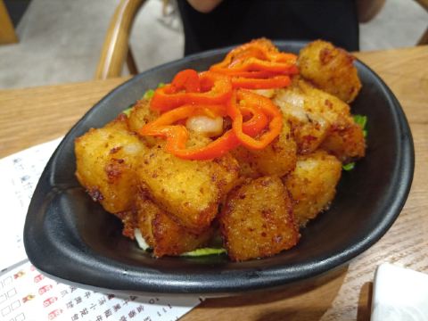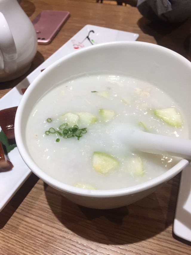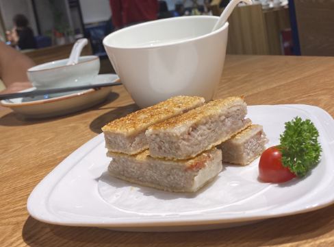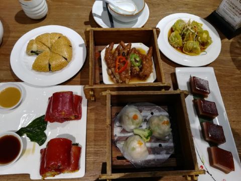 hj****70终于揾到一日黎禄运茶居啦,听闻节假日排队排到丧,于是等到工作日午市先去,呢个决定系啱既,因为始终都有位。2个人坐4人台,唔需要搭台,而且套餐个7碟点心都够地方摆。 坐底验证俾钱后好快就上菜了,菜单个度茶位有三个价钱段,最平6蚊,最贵10功夫茶,我地个餐系中间8蚊既,我理解就系加料茶,有几种选择:小金柠(即系红茶+柠檬),小青柑(普洱+青柑),桂花+铁观音……我就要红茶+一只干柠檬,开始时就饮到红茶,浸得越耐先饮到柠檬香同d“劫”味。 因为有7个点心,我地知道肯定食唔晒,所以先食晒d打唔到包既,打到包既推到最后有余力先食。 咸香鸡丝鱼茸粥第一个上,粥底几棉,少少鸡丝同鱼肉,味道清淡。 金牌虾饺皇,一笼三只,特登剥开只虾饺皮数数,里面竟然有7粒虾仁,啖啖都系虾肉啊,店家惊s唔够爽,面头仲要撒虾籽添。 豉椒蒸凤爪,有dd辣,够霖够入味,合格。 云南小瓜金钱饺,将d云南小瓜剁到细过米粒,同猪肉捞埋一齐做饺子馅,呢个点心比较清淡。 脆皮有机红米肠,又系虾肉!包住炸脆,再裹红米肠皮,因为虾肉炸过又包肠粉有的油腻,肠粉本身味道又清淡,配左一碟豉油一碟芝麻酱,点豉油食感觉一般,点芝麻酱食呢更加“笠口”,提个建议不如配碟喼汁或者醋,酸味酱汁可以解油腻又开胃。 脆皮葱油饼,里面系葱粒,外面皮炸脆,新鲜食几香口松软=热气,所以一件就收手。 剩低红枣糕同葱油饼打包。