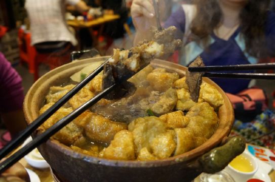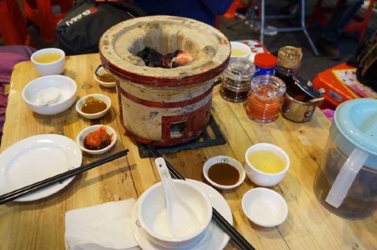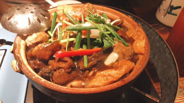 魔女锦鲤闻说天河体育西横街的龚记牛庄有炭炉牛杂煲,于是周末相约朋友一起来品尝品尝。 我们大概下午5点20分左右到达,就已经基本上坐满人了,只剩下几桌。迟一点来都需要等位。 店铺里的环境不大,就一个厨房和几张桌子。因为是要烧炭炉,估计室内坐的会比较闷热。 由于店铺不大,里面都已经坐满人了,我们坐在外面更有风味。街边的大排档都是采用这比较简陋的木桌和塑胶凳。每张桌子都必备的炭炉。一旁的帅哥服务员不停的在弄炭炉加碳,旁边红色一罐罐的不知道是啥东东? 看看菜牌,有很多不同款式的牛杂煲,不够的话还可以自己添加配料。3个人吃的话要一个小煲刚好,有些特色的还需要提前预订。晚上6点左右就已经坐满等待的人群,看来人气真的很旺。 这里配备的有醋、酱油、沙茶酱、辣椒酱等等。喜欢混酱的朋友一定会先给自己调上半碗酱料然后才慢慢品尝肉食。上了炭炉慢慢等待牛杂煲上来。 传统炭炉牛杂煲,味道独特浓香,还没吃就已经闻倒牛杂的香味。我们点的是砂煲牛仔肉牛杂煲,小煲118元。看上去料挺足的,有牛腩,牛筋,牛肠,牛仔肉,萝卜,面筋等等,份量不错。再搭配上蒜段,增加了肉汤的风味。一边吃一边用炭火慢慢再熬制,令汤汁能更好的渗透进肉里。 牛筋,这个煲得特软,滑溜溜的,口感淡嫩不腻,质地犹如海参。着牛筋含有丰富的胶原蛋白质,女士皮肤的圣品 牛腩,牛筋,牛肠,牛仔肉等等的配料, 肉汤浓郁程度,不用蘸任何调味料其实都已经很够味。 萝卜牛杂是岭南小吃的一个特色代表,因此吃牛杂怎么能少了清甜的萝卜。用炭火熬汤的牛骨头,骨头里的骨髓慢慢渗出。 面筋,打煲的好配料。 不够汤还可以免费加汤,喝上一口牛杂汤,特暖和。吃完浓味的牛杂煲再来一点青菜解解腻...很快就光盘了 寒冬里约上朋友围炉共吃,正所谓同捞同煲,既增进感情又暖和身体,在这露天的环境围炉而吃绝对比灯火通明的酒楼包房内来得更有亲切感。