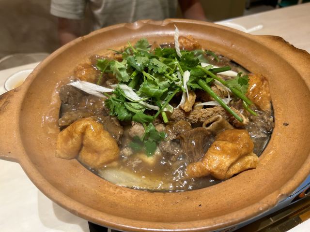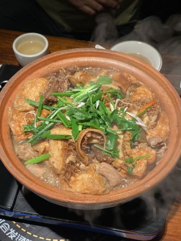 amydog🐮百岁奶奶牛骨汤 2023-10-26 在广州的最后一顿晚饭,真的已经吃不下了😂纯粹好奇想看看广东人很爱的牛杂到底是什么东西,之前呐呐也是强推了人广的那家,始终没有勇气尝试 团了159套餐 【口味】 |经典牛杂煲^外行人的艾小米觉得东西很多,内行人的小伙伴觉得东西很少,主要靠油面筋兰花豆腐萝卜撑场子,牛杂差不多就是一个人的分量,当然对于艾小米来讲正好,就是吃点萝卜兰花豆腐油面筋可以了,牛杂走开 |百岁奶奶牛骨汤^据说是老板百岁的老母亲最爱喝的一道汤,挺好喝的,主打一个清淡,牛杂实在是口味太重了,受不了 那些牛肉蔬菜最后还要放在那么重的锅底里涮,真的毫无胃口... 吃好身上衣服上的味道第二天也散不掉 【环境】 非遗,必吃榜,标签很多,生意非常好,排了近半个小时的队,也看到了直接拖着行李箱就来的 真心吃不惯,应该是自己的问题,毕竟那么多的客人