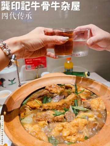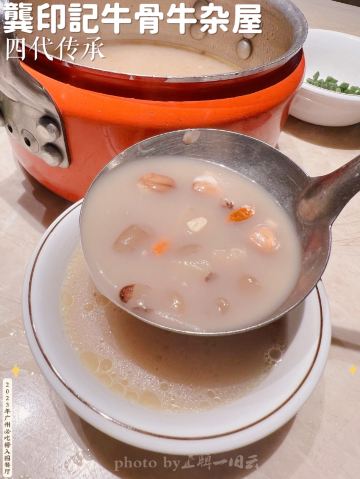 正牌一旧云广州探店|必吃榜餐厅四代传承老店 ❤️来广州旅游当然少不了吃的,时间有限我们就挑广州地道特色餐厅👨🍳来试试!看着必吃榜餐厅榜单,选了酒店🏨附近的广州火锅🍲热门榜餐厅-龚印记牛骨牛杂屋,它还是广州电视台📺纪录片餐厅,上过电视不得了呀! 🏡环境: 隐藏在体育西横路的美食街当中,一不小心就错过了低调的门口🚪,进去里面别有洞天,装修非常有特色,服务员💁殷勤招呼,真是培训得当! 🧐推荐: 🦴特色大筒骨,每桌上菜都响起了锤子🔨打断大骨头的声音,好过瘾!里面的骨髓好多呀,真少见! 🥣百岁奶奶汤,用压力小煲上桌,服务员介绍这是为了纪念创始人的一百岁奶奶👵的汤品,眉豆🧆、赤小豆、花生🥜、骨头🦴熬制而成的浓郁骨汤,料真多! 🏅金牌牛杂煲,也是每桌都点的菜品,最爱🐂金钱肚、牛肠、牛筋,焖得非常入味,配上青菜🥬、酱料,超有特色! 凉菜牛皮小姐经过6天烹制才做到爽口,真是厉害! 🏡餐厅:龚印记牛骨牛杂屋.四代传承(体育西1店) 🚗地址:广东省广州市天河区体育西横街25号 ⌚️营业时间:11:30-23:30 #探店# #广州旅游攻略# #跟我来探店#