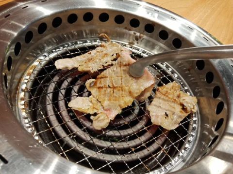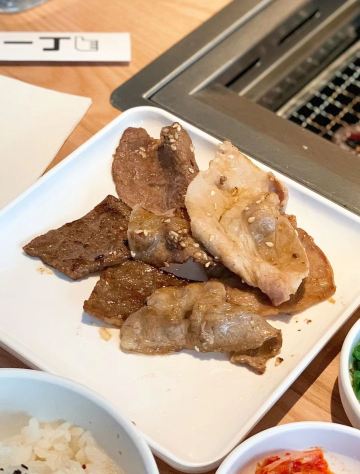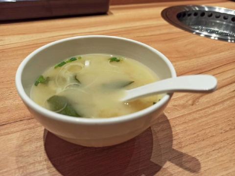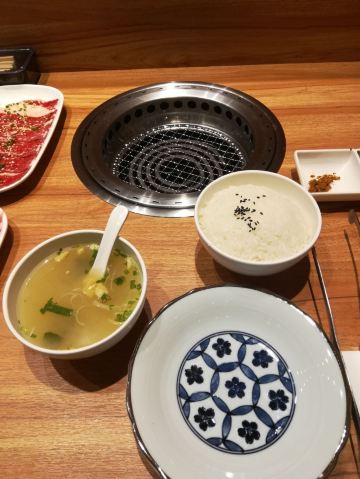 特上牛五花,脂肪多d,6-7片,烤个阵时出油比较多,但系有脂肪比较滑。 盐葱牛舌,8片左右,圆圆地一片,烤熟后无点收缩,牛舌口感爽滑,肉质有弹性。[爱][爱][爱] 赤坂泡菜,细细一碟仔,唔会好辣,有d甜味,用来夹烤肉一齐食可以祛油腻。[惊叹] 日式裙带菜,呢个就一般无咩特别。 越光米饭,圆碌碌米饭,都系早前装定好一碗碗,有单就直接上,预先装好有利上菜快,不过d米饭就唔热了。 |白贝味噌汤,有豆腐粒海草,唔会好咸。 |一人配左一份调味料,一格豉油一格五味粉。 两个人食分量唔多够,再加多一套,又系三碟肉,米饭同小菜就唔要。 特上豚五花,系团购餐变成左豚五花,肉细片d,不过烤熟无点收缩,相比牛五花,豚五花脂肪明显少,瘦肉多,所以口感就鞋d。