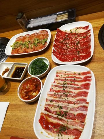 特上牛五花,极上雪花牛小排,澳洲M9和牛,盐葱牛舌,越光米饭,白贝味增汤,特上豚五花,和牛日式烤肉,赤坂泡菜,秘制酱料