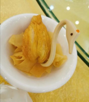 对比其它的广式茶楼,喝茶的品种不算多,有几个菜色值得一尝,天鹅酥,按位上,比较大,传统榴莲馅,还有一口包也比较有特色,鸡肾,桑叶苗,猪肠粉也挺好吃的。