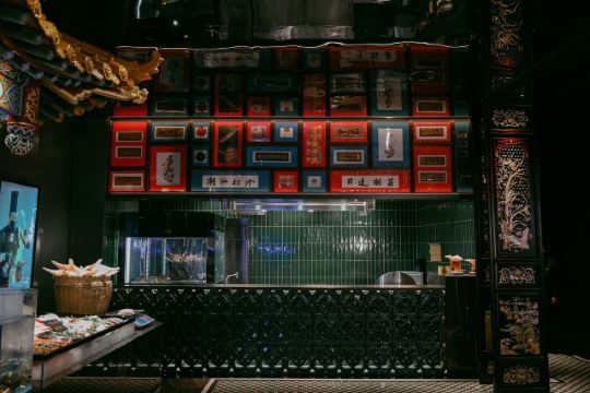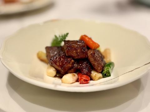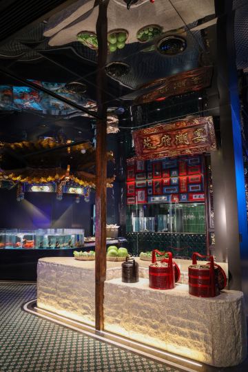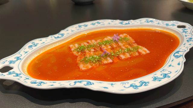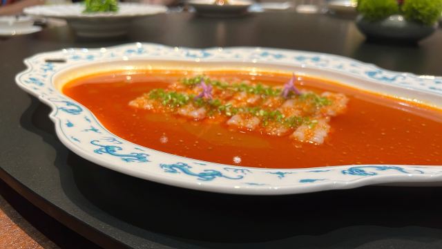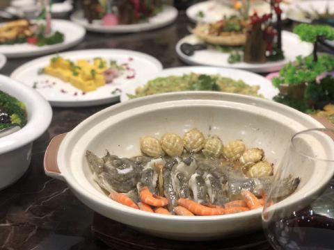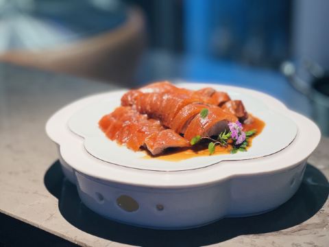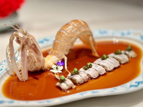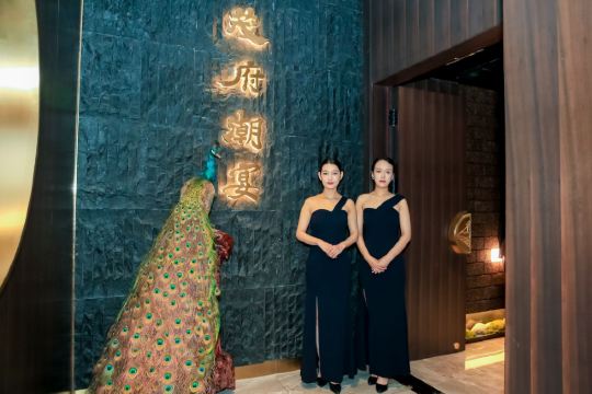 装潢十分讲究的茂府潮宴·潮州菜餐厅 ,有各种风格不同的包间,环境雅致私密,普洱茶饼装饰的墙面气派十足。包厢内宽敞明亮灯光柔美,菜品以选料考究的海鲜为主,荤菜素做,注重养生,摆盘造型精致,入口令人惊艳。