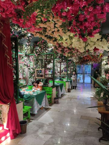 囤了好久的劵,差点过期浪费了!刚好两爷子不想做饭的日子,首选这种极具性价比的馆子! 位置相当好找,就在解放碑全季酒店22楼,顾名为山城二十二[调皮]打开电梯的一瞬间,繁花似锦,感觉特妖艳的装修风格,有点穿越!店内店外,堂子非常大,有包间,有雅座,有帐篷,可以说,能够想到的风格都全了,挺好的! 点的双人餐,但份量绝绝子,估计4个人都够,味道感觉中上,典型的江湖菜风格,整体还是可以!如说点意见,就是菜品的噱头太少,特别是游客居多的解放碑,菜品的话题感不强,感觉很江湖,少新意,缺点那种哇塞的感觉!