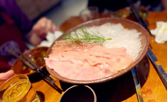 [薄荷]环境: 都是长条凳,方桌。人多的话,可以分2桌坐。否则可能有点挤 按照人头算的油碟,有不吃辣的,所以就点了鸳鸯锅,菜品基本还是蛮实惠的,人多吃还是蛮划算的。点了蛮多,感觉贡菜很爽口好吃😋 牛肉啥的很嫩,油碟配辣锅很解辣[调皮][调皮]