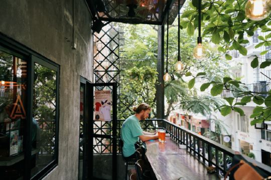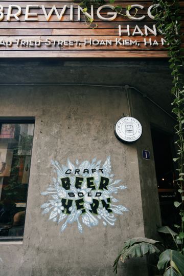 这家精酿啤酒馆就在河内大教堂旁边不到100米,酒吧二楼的露台还能看见教堂背面。与胡志明市那家一样,同样工业小清新环境,也有室内室外分区,一般晚上会爆满。走上工业泥土风的楼梯,二楼有个不大不小的天井,夜晚在这儿喝啤酒,想想都凉爽,白天还是有些热,我在这儿喝了一杯实在太热,最后还是进屋拥抱空调,随便喝了两杯小杯品尝啤酒。有品酒套餐,品后喜欢哪款再点大杯。我品了一杯火龙果手工精酿,天哪!太酸!这些创意啤酒新鲜好玩但都不一定好喝,啤酒还是喜欢最经典的黄啤。还是蛮有乐趣的,喜欢喝啤酒的朋友可以来这家消遣。