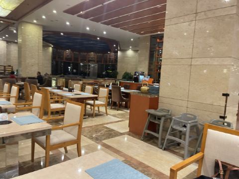 世纪金源大饭店内的自助餐厅,食材新鲜、种类繁多。烤牛排不限量,都是提前腌制过的;餐厅内的蛋糕也非常受欢迎。餐厅内的客人一般不太多,环境很安静。