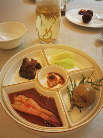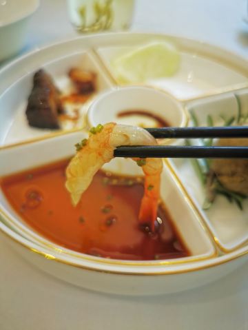 虹御轩,一家有品质有格调的餐厅。 餐厅就在高岛屋旁边,有自己单独的花园和院子,停车方便的,地铁也方便。 用餐的菜式都是按“每位”上的,精致、美观、好味道! 冷菜是五味拼盘,其中的鹅肝,入口即化,绵绵的,意犹未尽;虾也是Q弹好吃的。 瑶柱松茸汤,汤头清澈,鲜美无比。 翡翠豆泥奶油虾,一只个头适中的明虾,虾肉紧致、入味,推荐的。