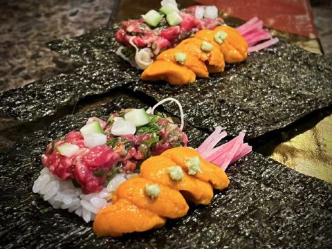 鸡肉釜饭,羽下肉,和牛&海胆手卷寿司,去骨牛小排,海鲜釜饭,提拉米苏,开边蒸大虾,牛油果色拉,蟹肉酪梨嫩叶色拉,豪华和牛海胆手卷,老乾杯捲,抹茶白玉冰激凌,特级牛小排,手工布丁,和牛牛排,霜降猪肉,和牛经典生牛肉,本日限定和牛五种组合,鸭肝釜饭,澳洲和牛炸牛排三明治,澳洲和牛特级指切牛舌,鱼子酱,和牛鸭肝松露春卷佐鱼子酱,溫體牛火鍋,老乾杯名物,烧肉卷,抹茶冰淇淋,海鮮拼盤,北海道海鲜饭
