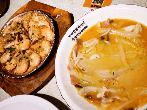 干锅手撕包菜,脆皮豆腐,三黄鸡,香酥小牛排,鸡汁昂刺鱼锅仔,豉椒酸汤牛蛙,白灼芥兰,蛤蜊蒸蛋,西芹百合,香酥鸭,四喜烤麸,芝士黄油焗铁板虾,本帮酱鸭,手撕包菜,响油鳝丝,自制面筋煲,奶香玉米烙,蒜香排骨,日式皇帝鱿,清水炖蛋,干锅有机花菜