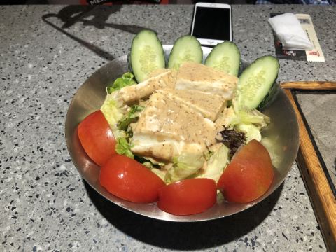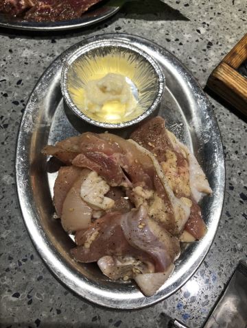 DDDDDD宝📍位置:环贸iapm对面,从一个小通道进去乘坐电梯到6楼,别有洞天。 🥗菜品口感总体一般般吧,没有特别惊艳也没有难以下咽。也不知道为啥这么火。 「盐葱牛舌」薄切的,比较正常,也挺嫩「黑椒酱横隔膜」应该是腌渍过的,口感还不错「鸡腿肉」这个烤的时候要小心,很容易着🔥呀[笑哭]… 鸡肉挺嫩,就是有点太咸了… 【豆腐色拉】 切割也太大块了,感觉上来一盆生的蔬菜(准备炒菜下锅前的样子)…原本还挺期待的,上来之后毫无食欲… 唯一惊艳的是「芝士南瓜」第一次漏下单,再点说要等半小时。上桌之后挖一口,拉丝的芝士超级赞,咸咸的芝士口感超级浓郁满足,挖开芝士里面是南瓜泥,奶香味甜甜的。赞~不过一定要趁热,冷了无法拉丝,也会觉得有点腻 ⏳等位:记得提前预约~否则会要等很久哦,而且店家会一直问人是否到齐。很火的一家店~ 💁服务:似乎有好几个台湾店员。服务一般般吧,可能生意太好了,忙不过来… 🏠环境还算不错,不过就是越晚开始越吵闹,几乎每桌都喝酒,会很嗨,加上背景音乐🎵,面对面聊天需要大声吼的那种,导致聊了一顿饭的时间,出门喉咙哑了……