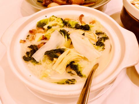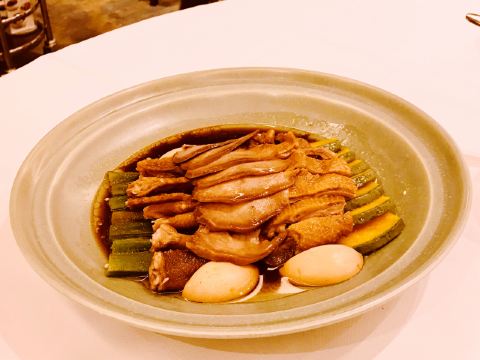 “唐宫”在申城的历史可追溯到上世纪九十年代,最初的时候以“燕翅鲍”闻名。现在的“唐宫”,在申城有许多连锁店了,菜单上品种更丰富了,高端的“燕翅鲍”依然做得很好,中档菜看来更受欢迎。粤菜点心仍然精致美味,金奖乳鸽似乎没有过去那么好吃,但是玉米汁五仁炖海参和潮州风味卤味拼盘深得我心。环境依然有着港式的精致,服务员依然彬彬有礼,纵然它是一家老店,还是很爱去吃点什么!
