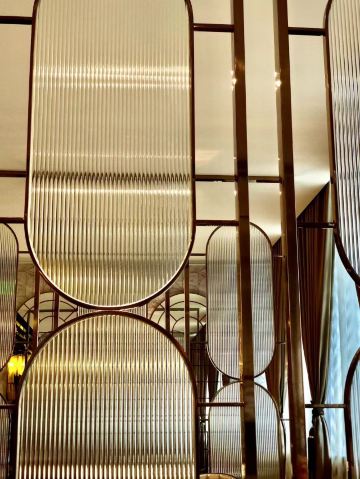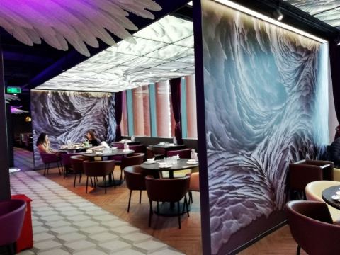 LIMUH鹅夫人 1)店面位置:陆家嘴中心店位于陆家嘴中心MALL7楼 2)店面特色:米其林一星餐厅,王品旗下专注烧鹅料理的粤菜品牌餐厅。主营鹅宴、港式烧腊、风味小食、点心和私房菜等。 3)店面环境:面积比较大,门口的玻璃展柜里悬挂了众多的大鹅,店内装潢有灵气的蝴蝶灯加上艺术感很强的蓝紫色墙面让用餐环境有一种英式宫廷宴会厅的感觉。餐具也是羽毛装饰,餐桌上有纸巾和吃鹅方式介绍。 4)用餐体验:进店有服务生导引入座,扫码点单,点单后,出单速度较快。有免费柠檬水。 22元一杯的金茶王冠军冻奶茶:冰块是奶茶做的,奶味与茶味的平衡感以及浓度和甜度刚好,冰块茶味偏浓但入口不涩, 比较香浓醇厚。 12元一份的冰火菠萝油上单时黄油片下层铺上了冰块让奶油能维持在冰冻状态形成冷热口感对比。菠萝包外皮酥脆,整体偏甜腻,有些干,但把温热的菠萝包内夹入一块冰冰凉凉的咸味奶油片将黄油融化在面包中间,然后再张口一口咬下去,固体状奶油及因受菠萝包热力影响而融化,可以体会到一冷一热、一甜一咸堆叠出的口感。 22元一份的爆浆流沙包有3个,吃的时候要小小心,因为不管是一口咬下去还是用手掰开,满满的馅料都会爆出来,整体偏甜。