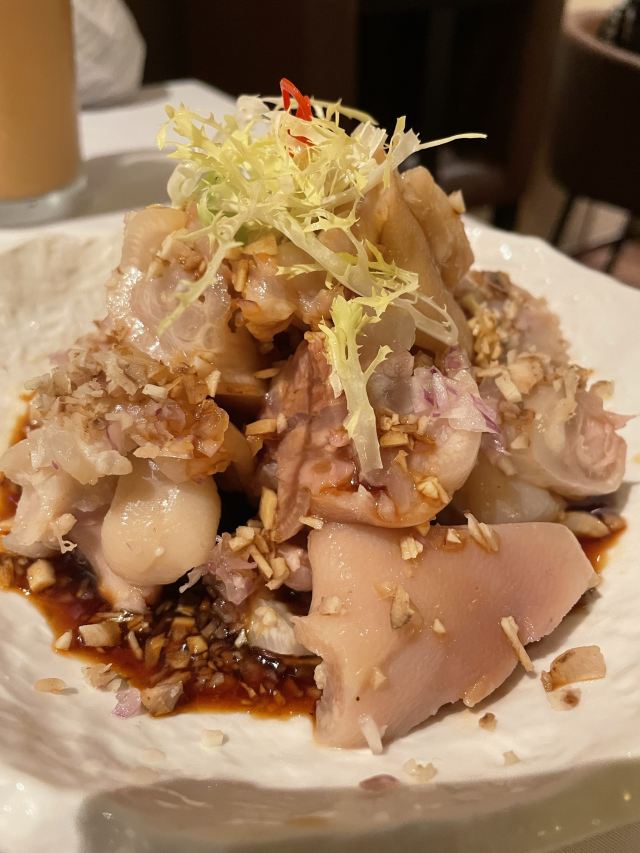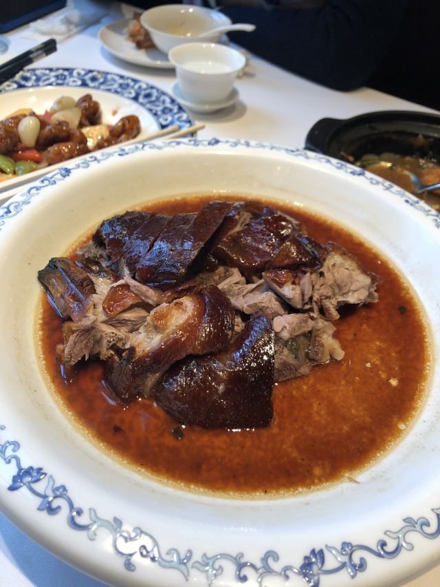Shuying鹅夫人去过好几家了,这家新店位于新开业不久的陆家嘴中心商场的五楼。店里的环境是鹅夫人一贯的黑紫,很显贵气。 开始点菜,服务员告知招牌烧鹅没有了。拿着菜单不知道还能点啥。选择实在太有限。 选了新上的金汤鹅笃鲜。讲真,既没笃的厚重也没鲜的轻盈。鹅肉是其原本的又硬有柴,汤底完全是一股鸡精味儿。尤其是没看到常用的春笋呢。 虾皇饺用料不错,但水晶皮不行啊,沾在筷子上就烂掉了。 爆炒鹅三宝算是唯一能推荐的。口感和味道都不错。尤其口感,鹅肠、鹅心和鹅肾入口似柔,上牙又够脆生生。 东西一般,服务也不来补偿。招牌菜出现断货不说。虽然有服务铃,也不能一个服务员都见不到人影啊。而且服务员明显对菜非常不熟悉,一问三不知。 虽然不是米其林餐厅,但既然沾了米其林招牌,来的人本来就带着期待。但凡稍有不慎就容易失落毁誉,更何况,是真的不行啊。 这家唯一的长处大概就是便宜了。以后也可以跟人说,人均一百,去吃米其林餐厅吧。