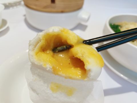 咕噜cloro记得是跑浦东办事,正好碰上中午时分还没吃饭,就看到点评券包里躺着一张之前抽到的廣府鹅夫人的爆浆流沙包,转战位于陆家嘴中心的廣府鹅夫人~ 饭点时间生意很好,在外面等位了一下以后进去的,店家小哥哥倒是热情的推荐吃鹅,还说厨房现在还有2份鹅,卖掉就没了,可是想想我一人食怎么吃得下半只鹅呢,还是吃点点心为主吧[调皮] 「经典港式丝袜冻奶茶」25元,有港式味道没错啦[调皮] 「爆浆流沙包」28元,一笼3个,吼吼次,筷子🥢一扎那个流沙就往外涌,也不管吃相有多难看,不浪费原则,吃得有点狼狈[笑哭] 「鲜虾云吞面」 38元,作为午市主食最合适➰ 去的晚了,可惜没有吃到菠萝油[心碎]