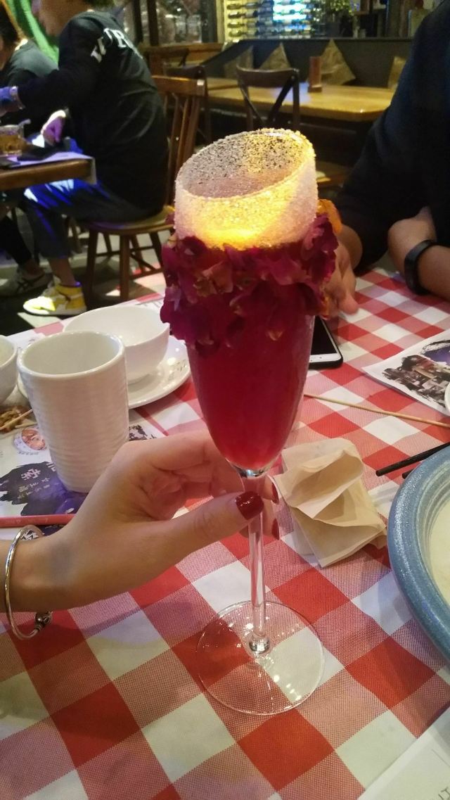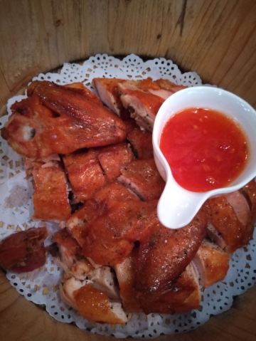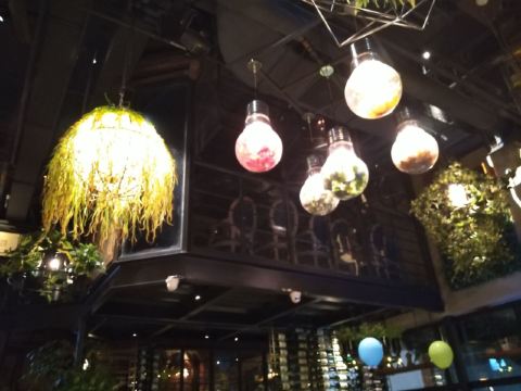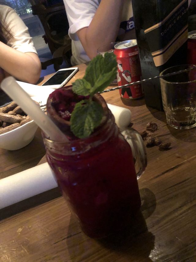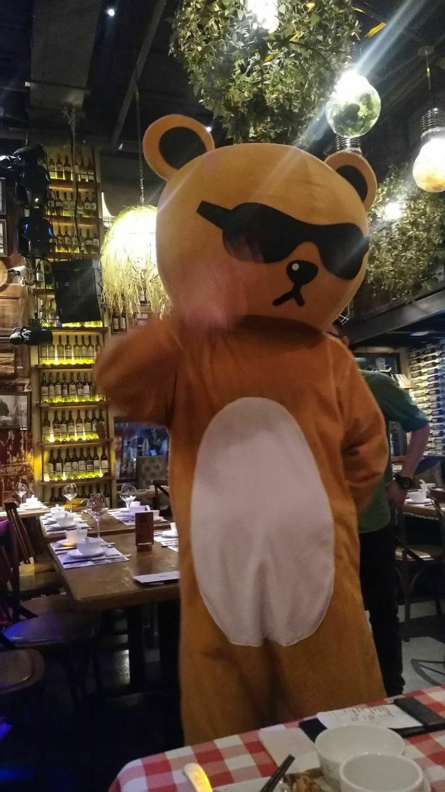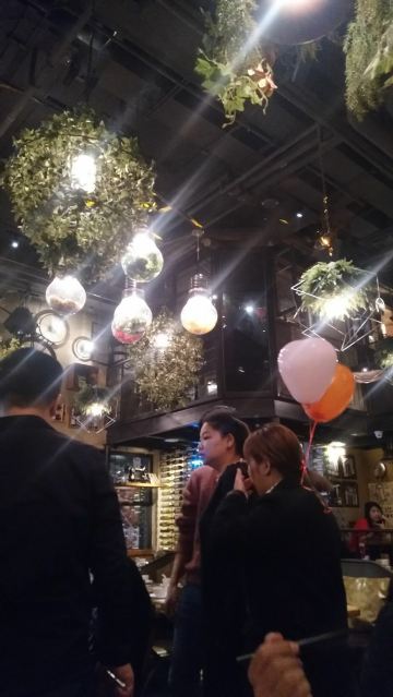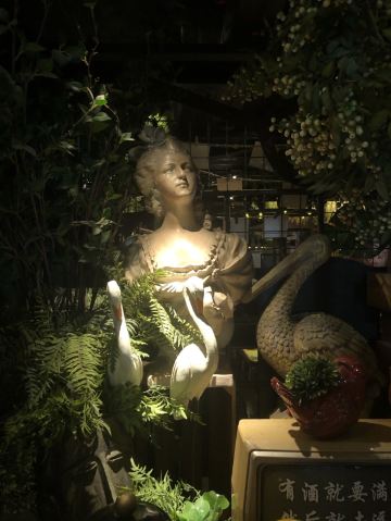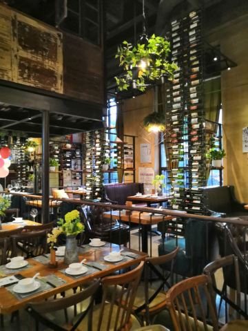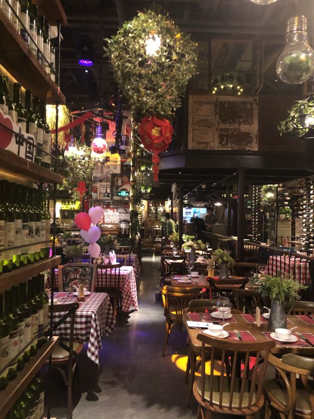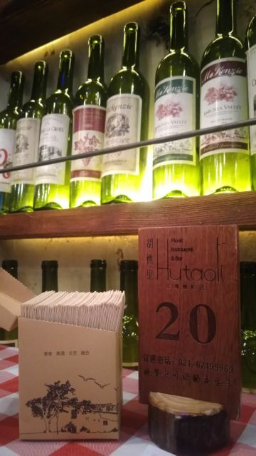 大头豪啊️ 文艺与大气兼具的门头,门口有个红酒瓶架起的“圣诞树”,一丝葡萄酒发酵的味道从北到南弥漫而来。 ️ 店内设计复古文艺,大多由红酒瓶和绿叶覆盖,给人在森林氧吧的赶脚(虽然绿植都是假的,但是氛围在,哈哈) ️ 送了一个牛皮纸装的面巾纸,还是很柔软的呢。定制的餐桌牌也是很有艺术感。 ️ 菜品:油呛油麦菜,从不吃油麦菜的我,遇上胡桃里的油呛油麦菜,也是控制不住我geiji阿。够入味。 ️ 胡桃里·招牌烤鸡:上菜时是一个鸟笼子送过来的,小哥哥拿走的真快没拍住照片️,鸡肉外焦里嫩,送一碗酱(大概是番茄酱和豆瓣酱配比而成,甜甜辣辣酸酸的)嫩肉沾取酱汁,入口肉味细腻酸甜而又不腻。 ️ 香菇肉酱丸子粉丝丝:小小的香菇瓣倒着放,会有肉酱在香菇的小伞里面,盘子中间是晶莹剔透的蒜末粉丝,丝滑口感。 ️ 今天的胡桃里餐厅有好多人过生日呀,大熊熊送来了生日祝福,现场和工作人员一起跳野狼disco ,好嗨哟。 ️ 胡桃里好像半个小时左右会有一个游戏环节,第一次是摇一摇,没有中奖呢,第二次是数钱数到手抽筋,我得了个第二名,鸡尾酒一杯,真的是太幸运了。好久没这么幸运了,所以很开心。️