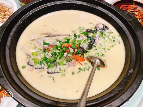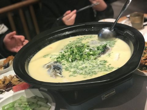 泡泡龙他爸服务还算不错,但也有上错菜的现象。菜的量普遍偏多,也偏咸,有点重口味,但是不算油腻。松江软糕比较受欢迎,外观也很有意思,里面的豆沙不会显得过甜;蒜香蚕豆不错,家里领导最喜欢的则是筒骨炖萝卜,家里小锅没法烧出这样的味道来,而且热气腾腾,正好驱散感冒症状。中午生意很不错,看来有不少附近的上班族来进餐,环境比较好,邻桌基本不会互相干扰。洗手间空间蛮大,干净,无异味。结账要到帐台,还可以顺手卖些松江软糕伴手礼回家,价格平实,开发票要到门口前台,扫码拿纸质发票,扫码拿停车券。就是那个停车券,扫码后输入车牌号码,而后屏幕上就什么也没有了,也不知道是否成功,只能开到停车场出口再说,还好顺利出去。这里离沪昆高速松江东的入口很近,就是停车场出来的左转通道设计不太合理,有违规嫌疑,也不太好开,要小心驾驶