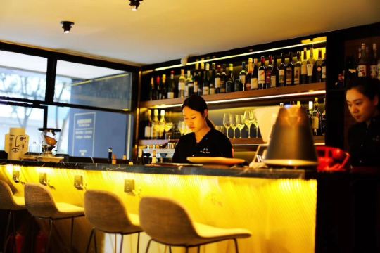 这里是Wineapp的线下体验店,定位高端的葡萄酒餐吧。店内的亮面烤漆酒柜和镜面墙彰显着时尚与复古的交融,与尚嘉中心的氛围相呼应。这里汇集了来自世界各地精选酒庄的佳酿,可以品鉴到300多款葡萄酒,还可以享用到由美女主厨精心制作的菜肴。