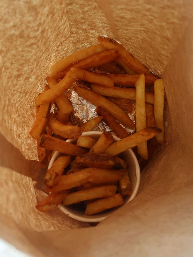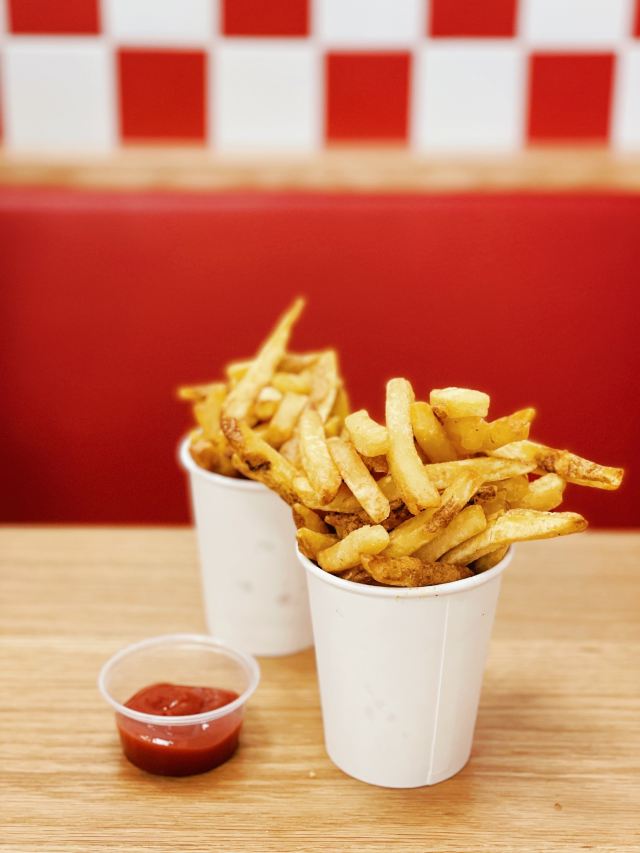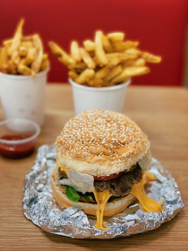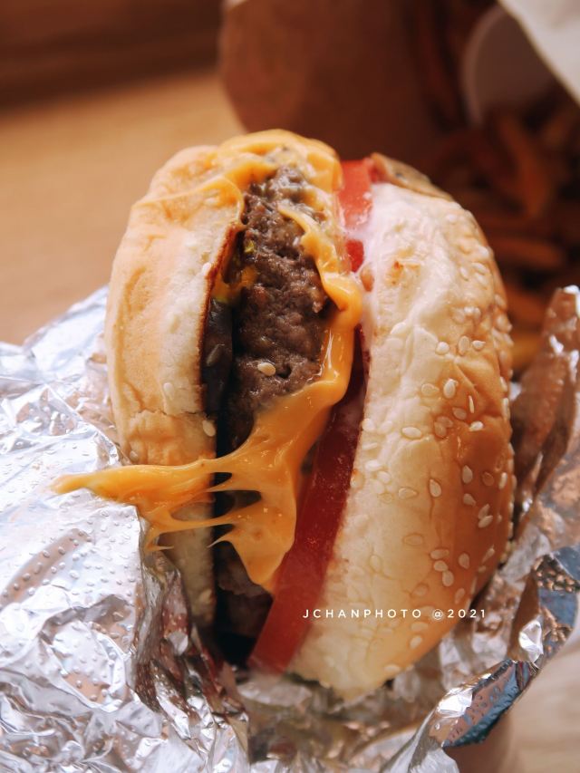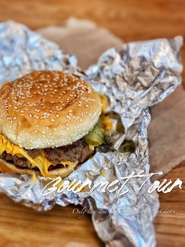 彼岸之澄米国超人气连锁汉堡品牌,有30年历史,全球1700+门店,上海今年刚入驻就成了热门网红店,吸引了一众粉丝前来打卡。 🍔培根芝士汉堡 Five Guys的特色之一是手工制作汉堡,超大一个,可以任选15种免费配料,选好后分分钟变成巨无霸汉堡!心水搭配是酸黄瓜+生菜+番茄+芥末酱+烤蘑菇+青椒+烧烤酱+墨西哥辣椒。满满热量,但是超级美味吖。大片培根配喷香牛肉饼,每一口都是无限满足感。 🍟花生油现炸的薯条,小份薯条已经比一般汉堡店的大份还要来的多了,薯条星人可以放飞自我尽情享用了。 🍅Five Guys的番茄酱也要好好夸一夸,酸酸的不甜腻,和现炸薯条是绝配~