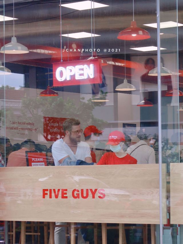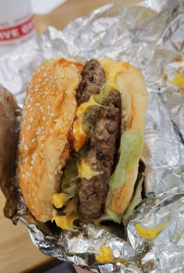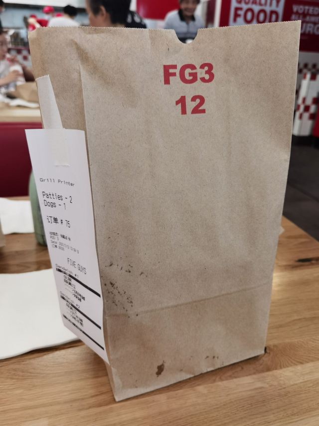 寂寞的西瓜终于等到Five guys家,不用排队也能恰到啦~ 📍 「Five Guys」 店铺地址:淮海中路939号巴黎春天1楼 营业时间:11:00-22:00 人均消费:约100元 💰 性价比 品质hin爱,但是价格真的小贵了一丢丢。 毕竟,最爱的In-N-Out,一枚肉肉多&芝士多的Double double,才3美刀+,奶昔更是只需要2.25美刀而已。 「全牛热狗」⭐️⭐️⭐️⭐️⭐️ 烤洋葱、酸黄瓜和黄芥末酱一应俱全的热狗,才是真正🈶️灵魂der! 而所有元素集齐的这一款,口味果然足够正,赞赞。 「芝士汉堡」⭐️⭐️⭐️⭐️ 简直太爱它家的酸瓜酱啦,酸黄瓜控表示完全一本满足,下次要不要double酸黄瓜➕酸瓜酱呢😜😜 汉堡牛肉饼的品质也还不戳,至少比起同类型的某S家略好。 「辣味薯条」⭐️⭐️⭐️⭐️ 微微带辣感的薯条,又是一款别家没有的好味道。 「奶昔」⭐️⭐️⭐️⭐️ 永远觉得美式奶昔偏甜,却也总是忍不住打卡一下下。这里因为有咖啡口味可以选择,貌似会有甜度被中和了不少的错觉😋 偶尔卡路里失控的小放纵,太🈵️足~