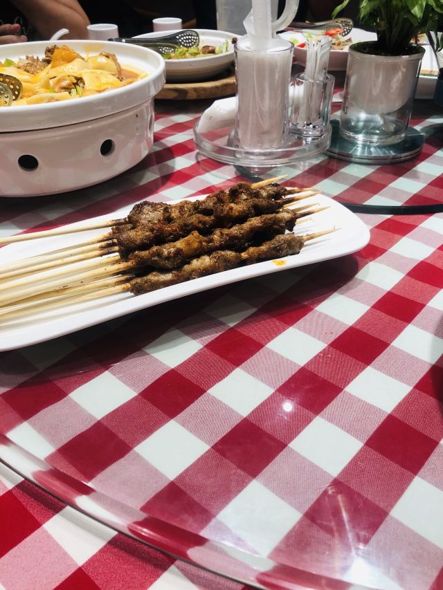 xy****88去过好几次,离家近,里面工作人员服务很好,喜欢吃他们家的羊骨棒、羊肉串,荆棘汁是特色,味道不错,就是菜品不是很多,主要是牛羊肉,如果人多的话菜点不出……