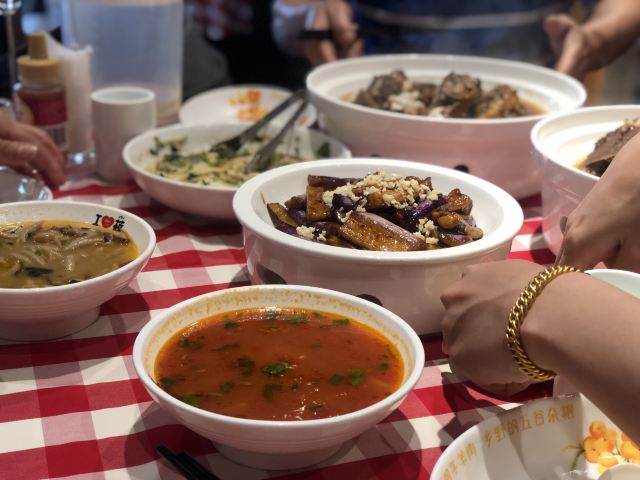 Xibeiyoumiancun (shanghaibailianxijiao)不管在老东家还是新公司在西贝聚餐还真挺多的~ 【口味】量很大,很西北风味,很符合我的口味。要我点每人一个大骨棒 哈哈。 【环境】这家在百联的楼上,挺显眼的,位子挺多,还有包房。 【服务】上菜很快,服务很专业,有些合作企业可以打折。