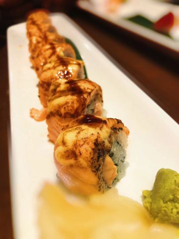 烤鳗鱼饭,三文鱼刺身,红酒牛舌,烤银鳕鱼,牛肉鹅肝卷,芝士豆腐,牛肉鹅肝寿司,手握鹅肝寿司,西京烧银鳕鱼,刺身海鲜饭,牛油果金枪鱼寿司,金枪鱼三文鱼手握寿司,生拌牛肉,温泉蛋山药,松脆巧克力焦糖蛋糕,火焰三文鱼卷,明太子鸡翅,三文鱼海胆饭,综合蔬菜色拉,角切饭,鹅肝寿司,烤牛舌,牛油果色拉,火炙和牛鹅肝寿司,和牛寿喜锅